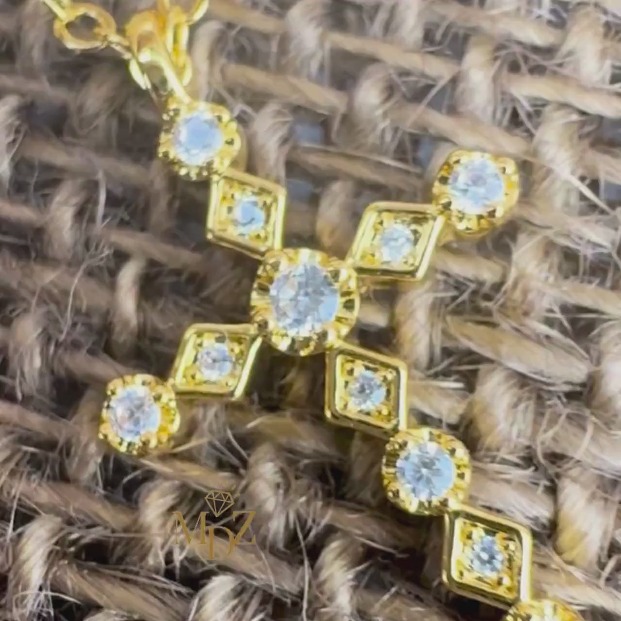 Gold Cross Necklace: White CZ Religious Pendant, 18K Gold Plated