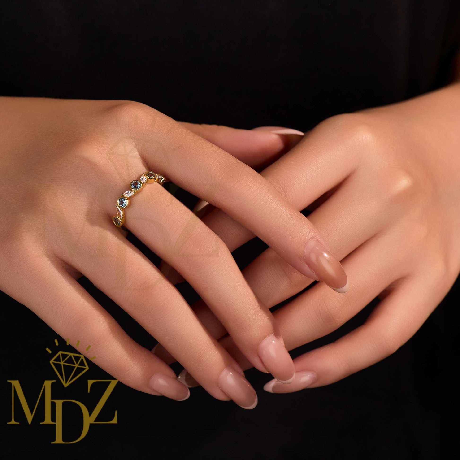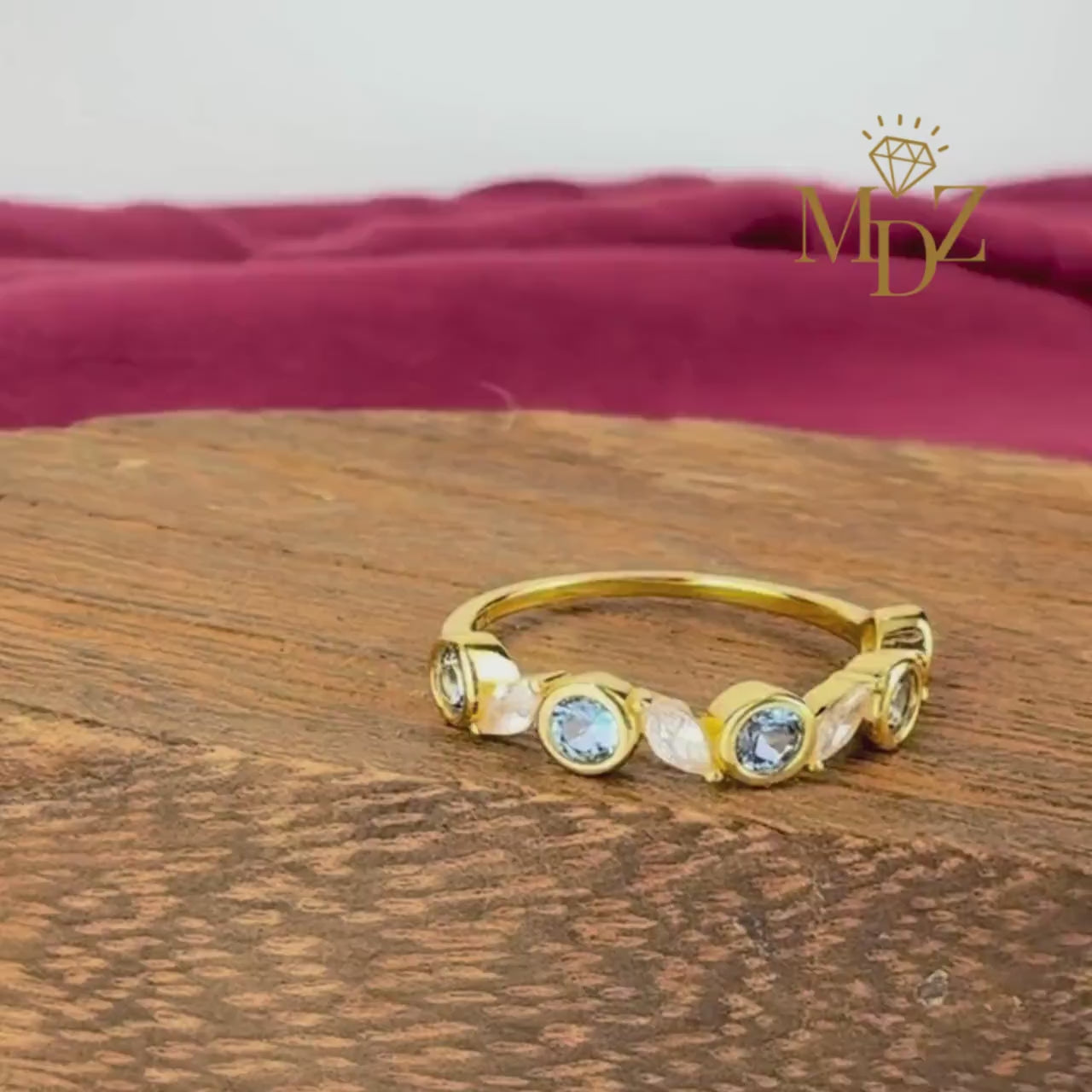 Gemstones: Blue Topaz (Round Cut) & White Cubic Zirconia (Marquise Cut)