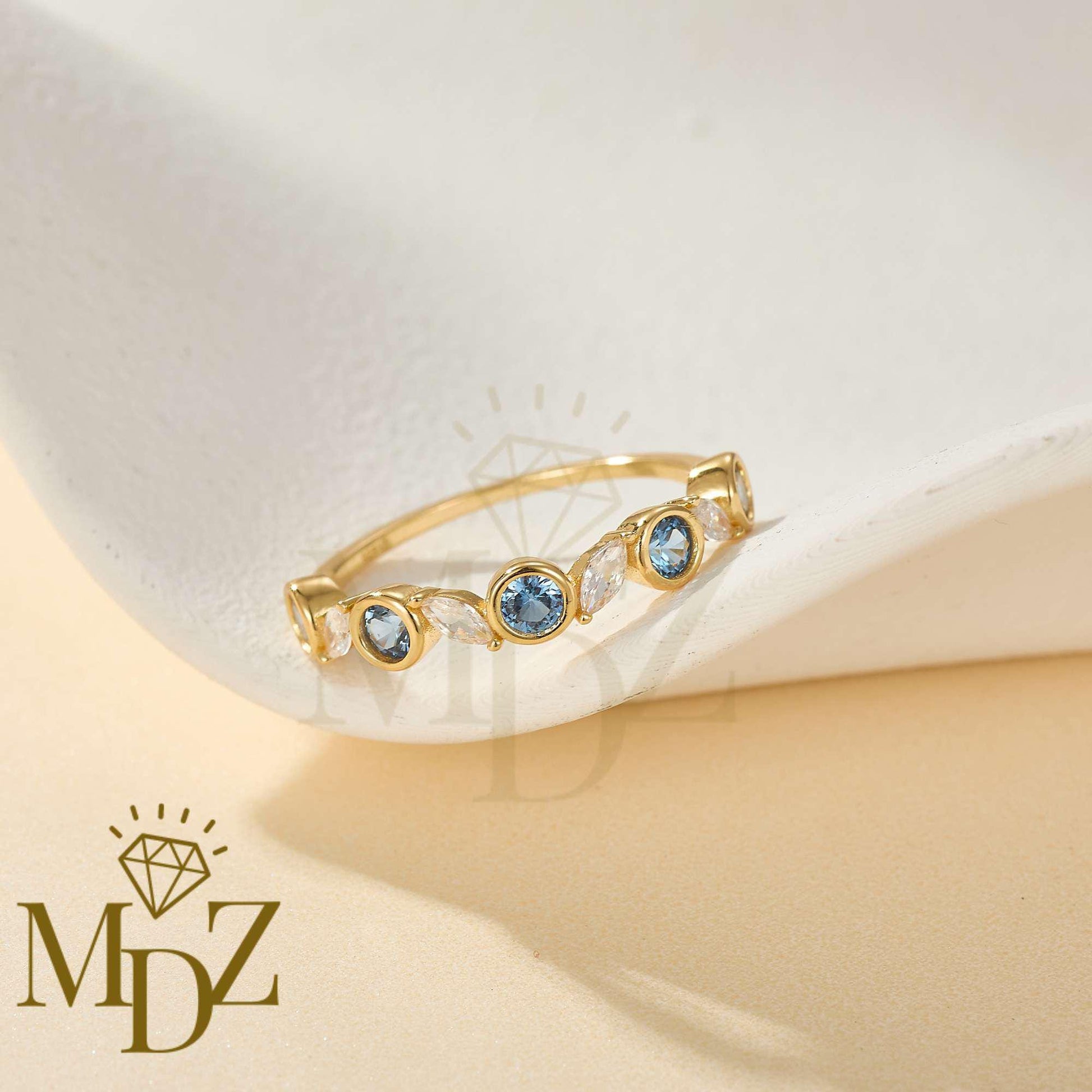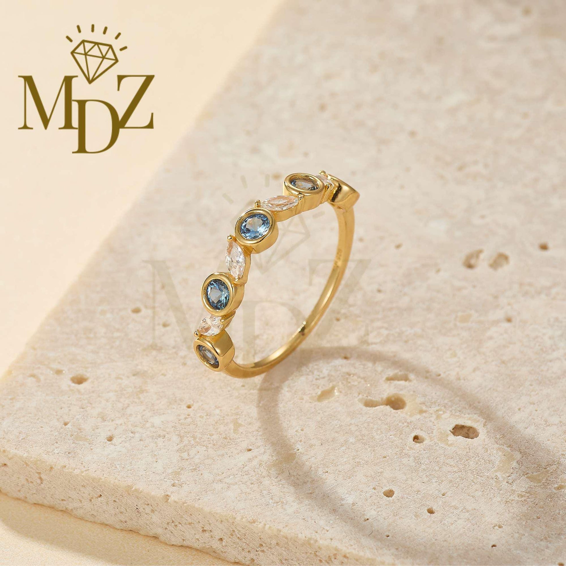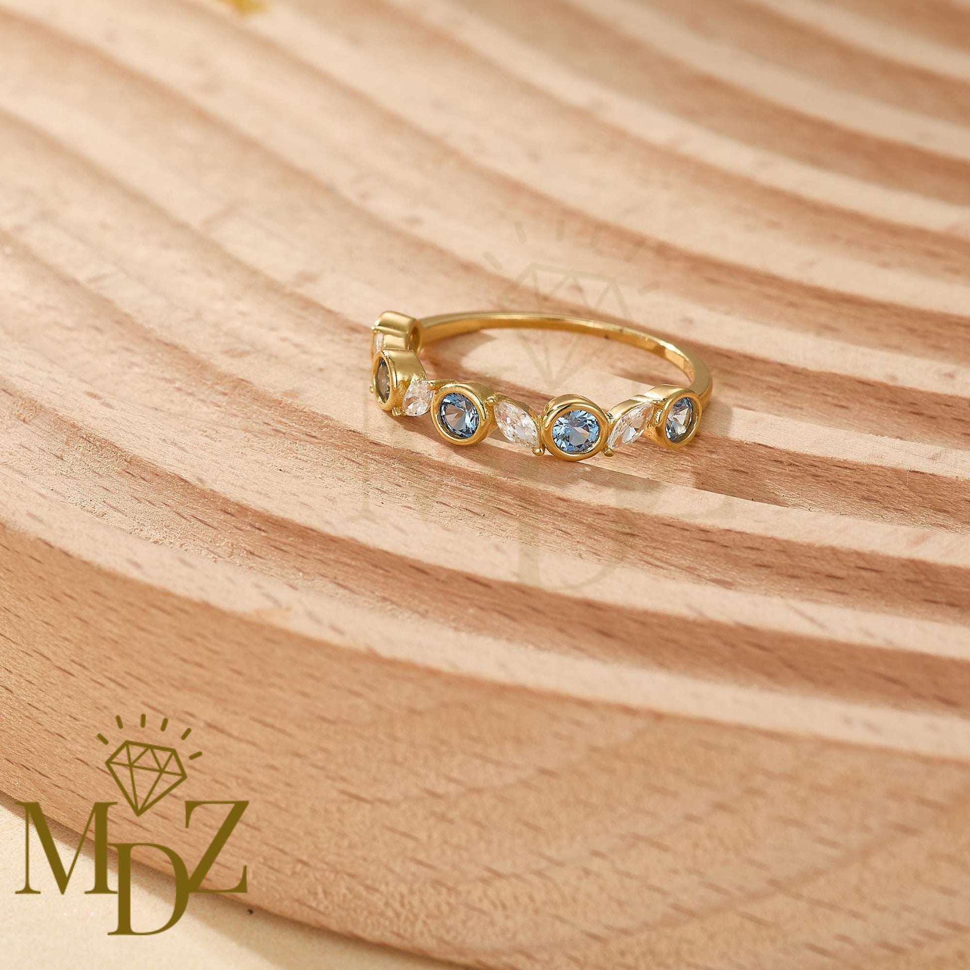 Minimalist Blue Topaz Ring : December Birthstone Dainty Stacking Ring in Sterling Silver