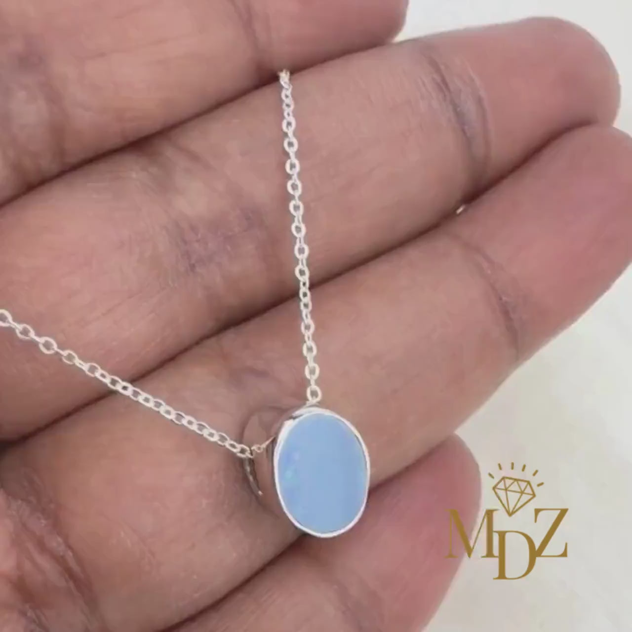 Minimalist Oval Australian Opal Pendant: Sterling Silver Dainty Necklace