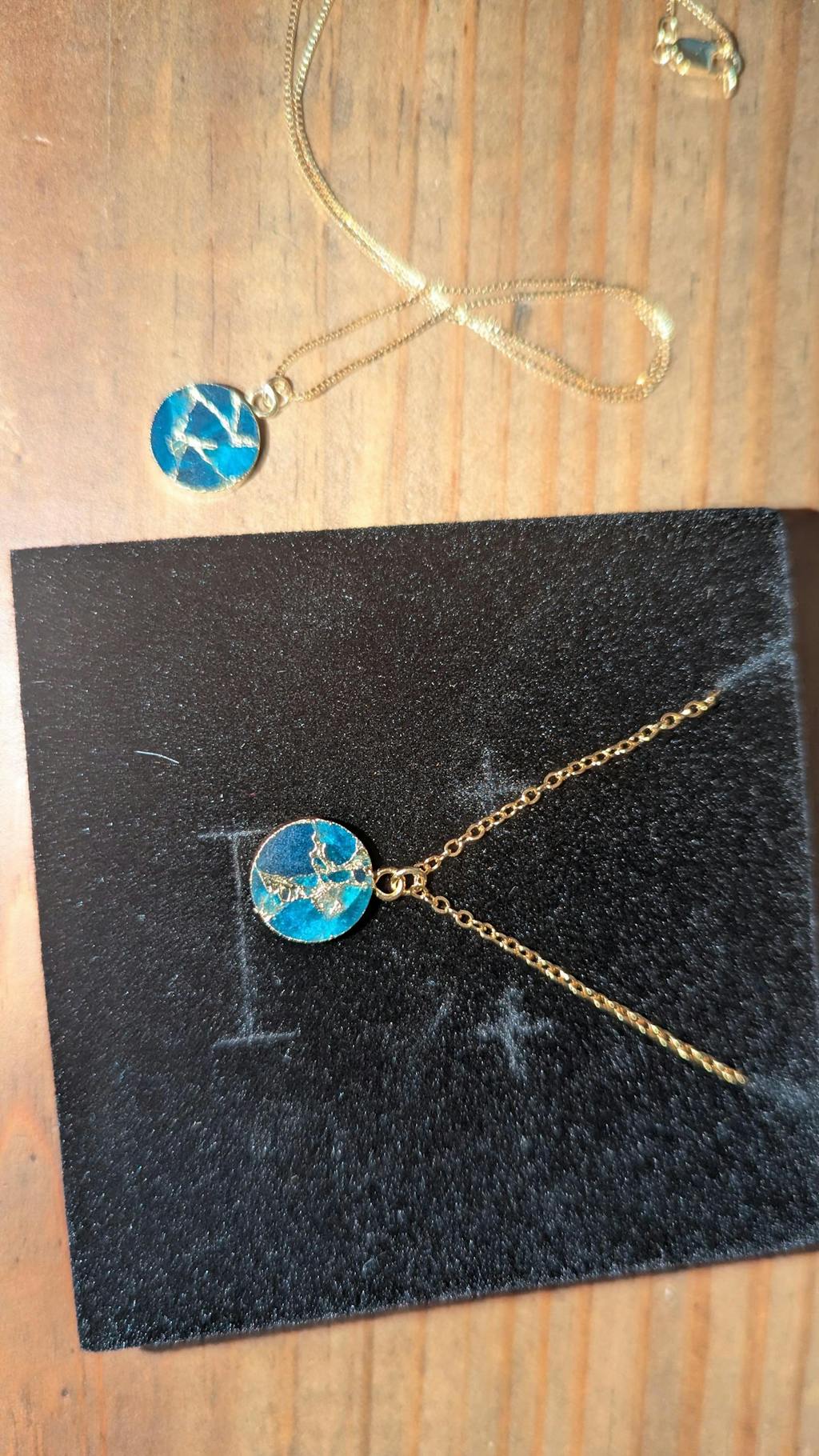 Minimalist Ocean Blue Round Mojave Turquoise Necklace with Kintsugi Inspired Design.
