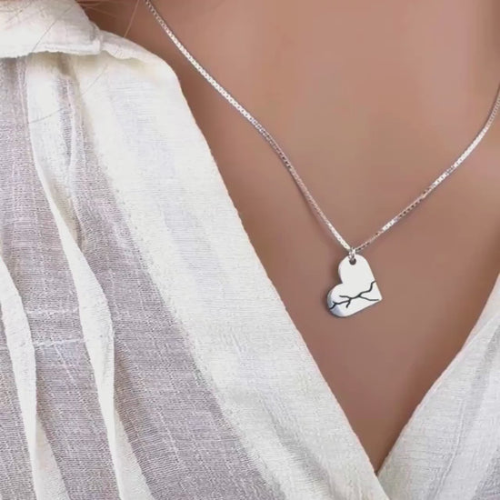Minimalist Sterling Silver Broken Heart Necklace- Kintsugi Inspired Design Jewelry.