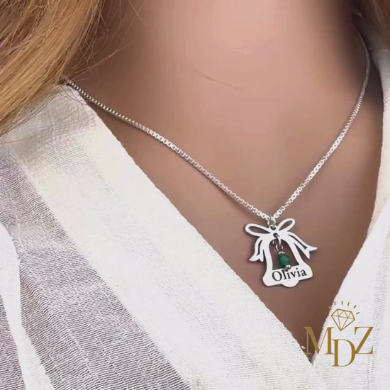 Sterling Silver Christmas Bell Necklace - Personalized Holiday Gift for Her, Birthstone Jewelry NSSL021