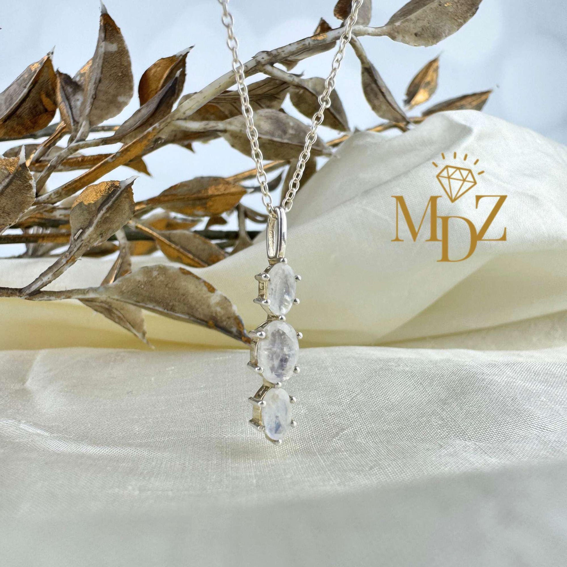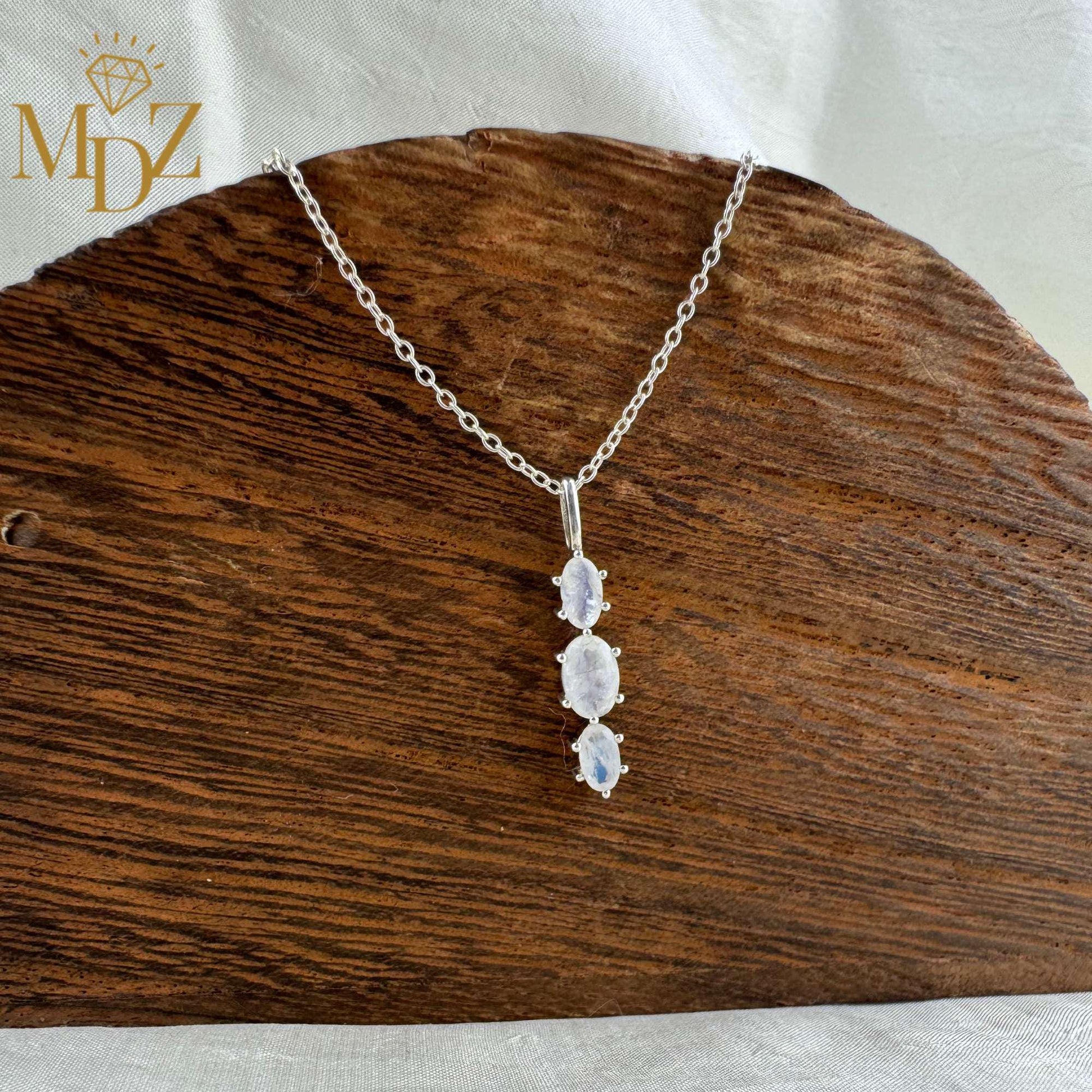 Please note: These Moonstone necklace are crafted using natural oval shaped Moonstone Stones. Each stone is carefully selected for its "flash" — the stunning blue hues that appear when viewed from different angles. While every gemstone is guaranteed to display some level of blue flash, the intensity and pattern of the flash may vary naturally from stone to stone, making each necklace truly unique.