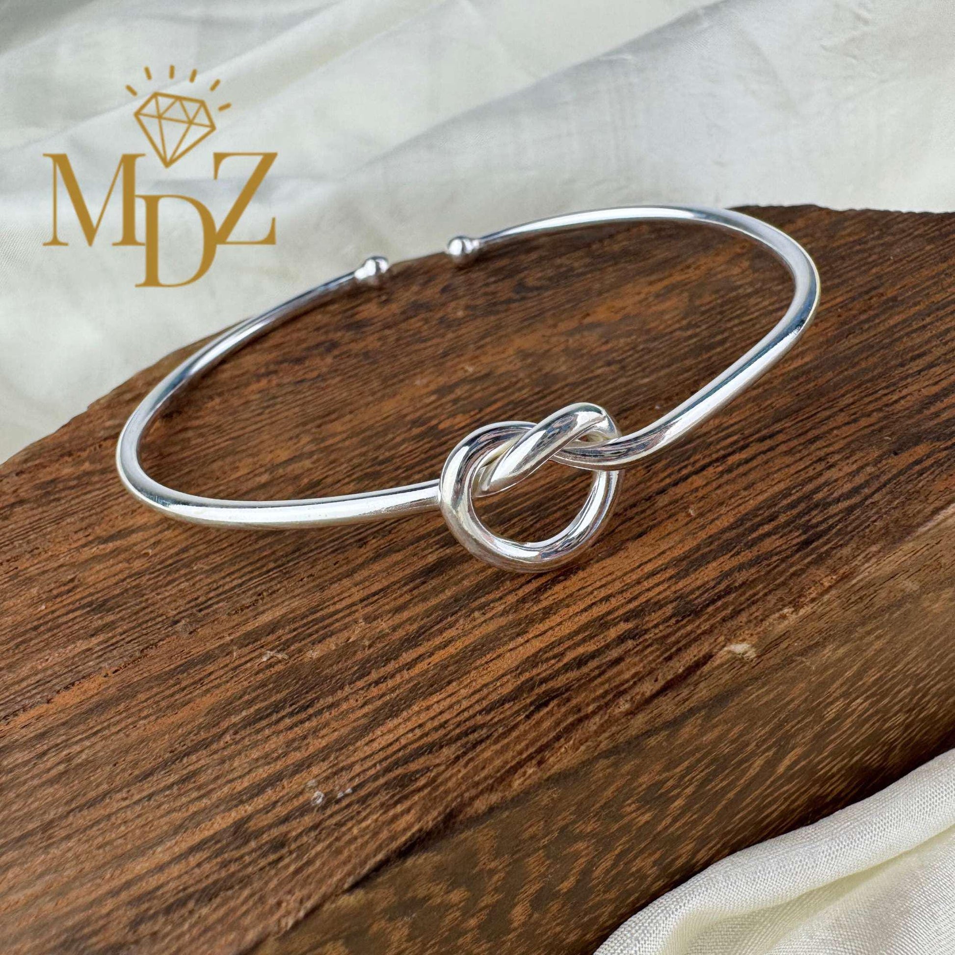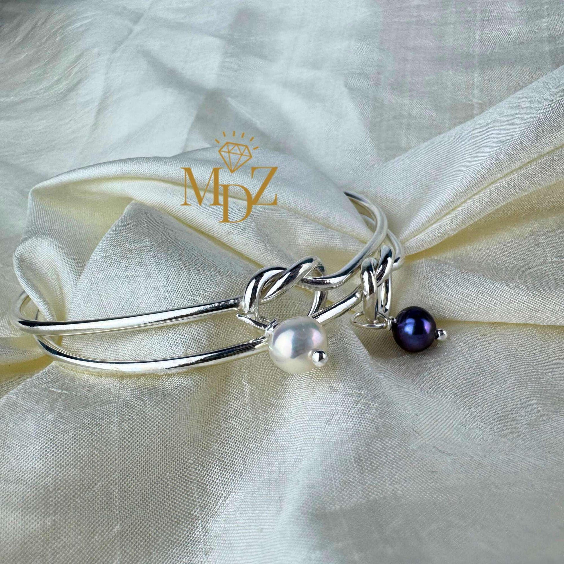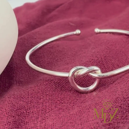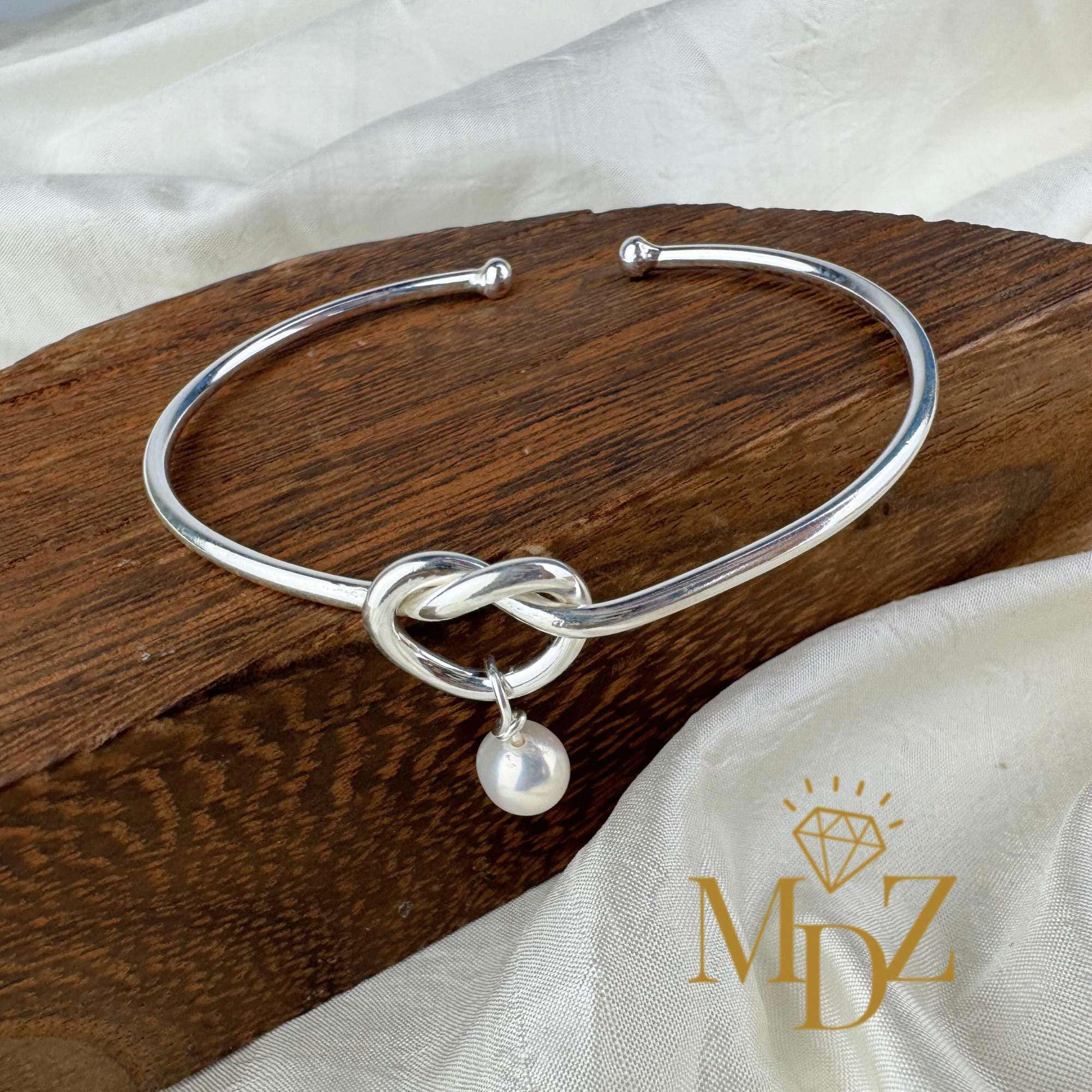 Sterling Silver Love Knot Bangle: Freshwater Pearl Promise Bracelet