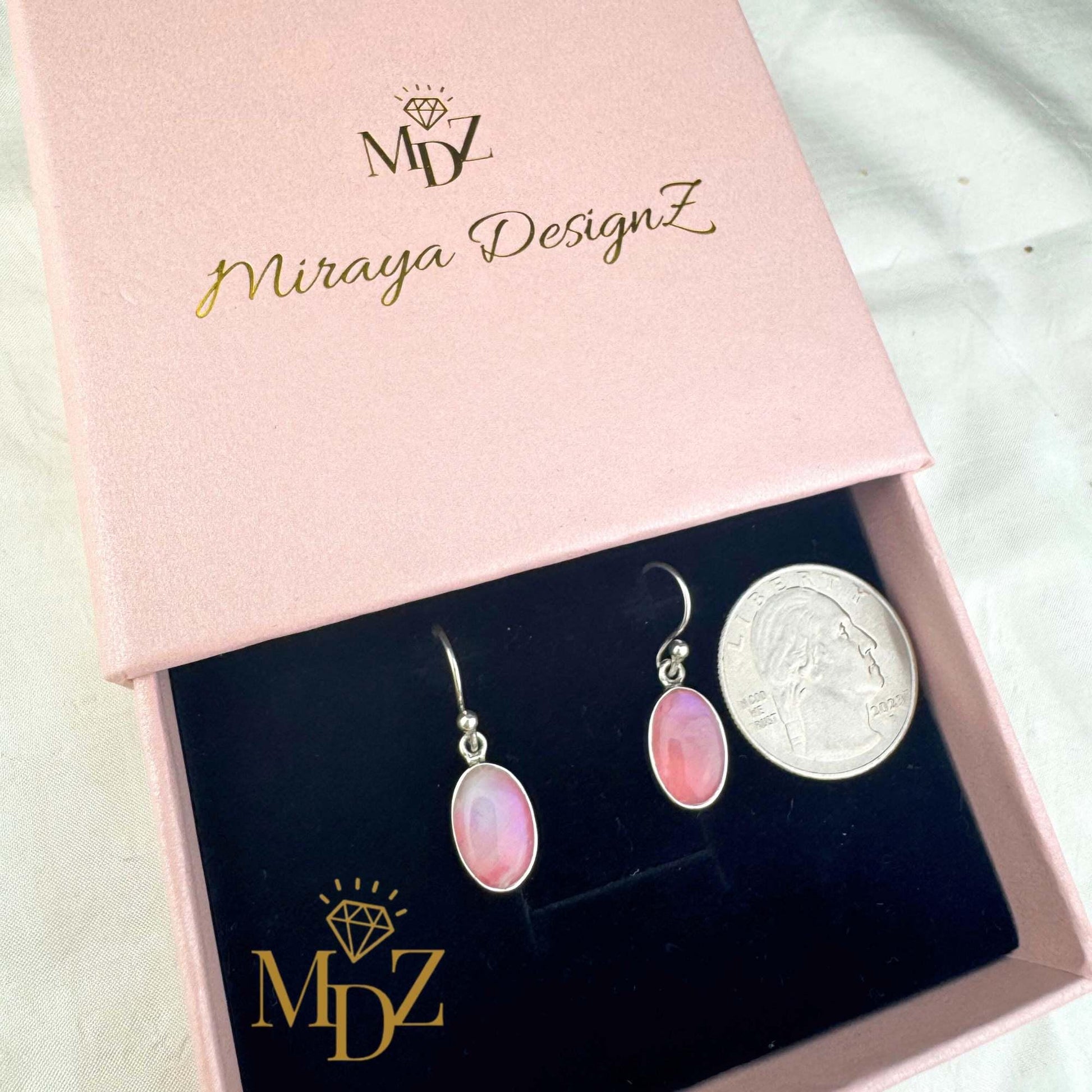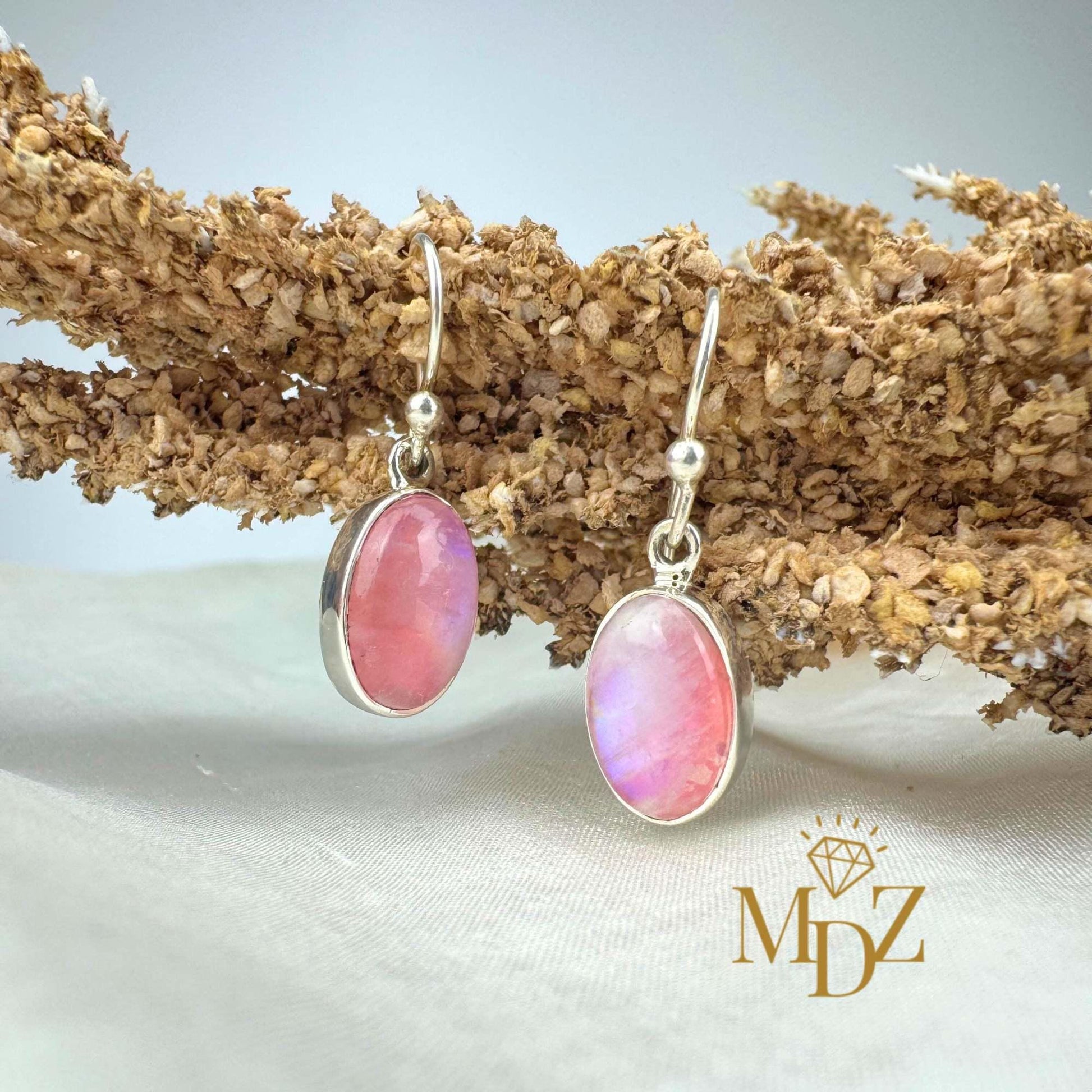Sterling Silver Pink Moonstone Drop Earrings: Minimalist Oval Jewelry, June Birthstone Gift