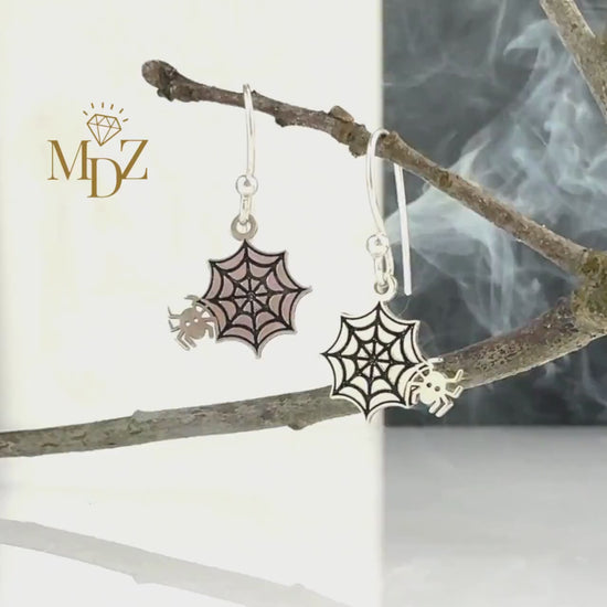 Sterling Silver Spider Web Dangle Earrings: Spooky Halloween Jewelry