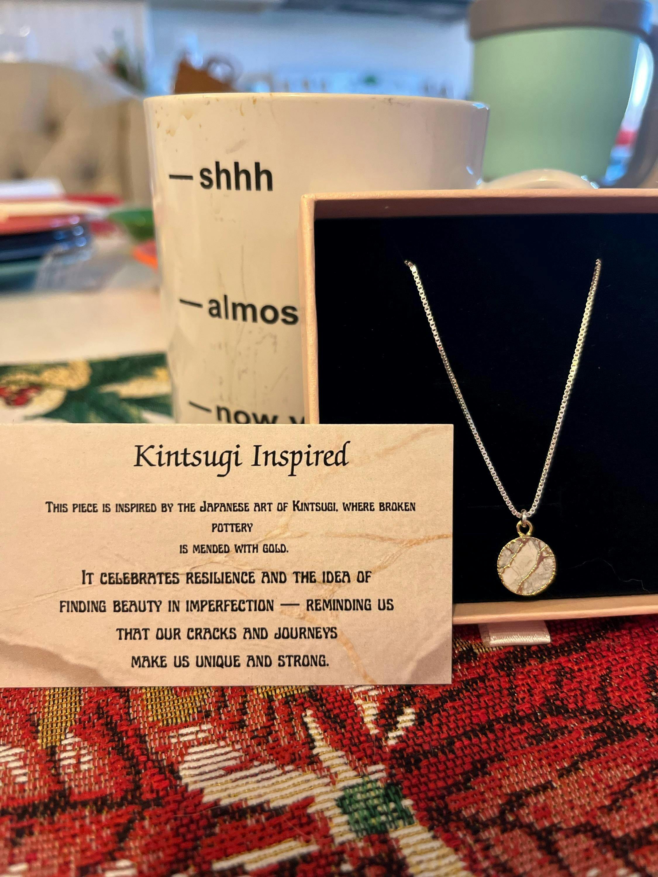White Round Mojave Turquoise Necklace : Kintsugi Inspired Minimalist Pendant, Bridesmaids Gifts